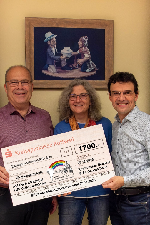 Im Rahmen der Nikolausfeier des Kirchenchores wurde der Betrag nun an die Alianza, die Partnerschaft der Kirchengemeinden Dunningen, Seedorf und Lackendorf mit Chachapoyas, übergeben. Die Alianza unterstützt seit vielen Jahren Nothilfe- und Entwicklungsprojekte in der peruanischen Partnerdiözese – von sozialer Hilfe für Familien in schwierigen Lebenslagen bis hin zu nachhaltigen Projekten in Bildung, Gesundheit und Infrastruktur. Jede Spende kommt unmittelbar dort an, wo sie dringend gebraucht wird.
